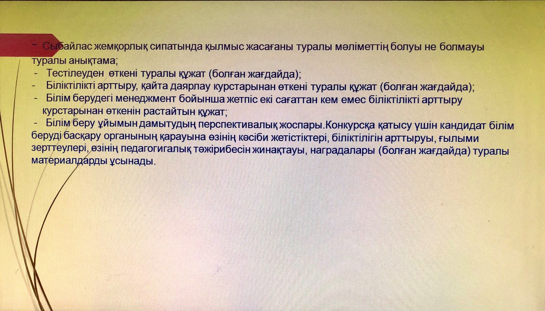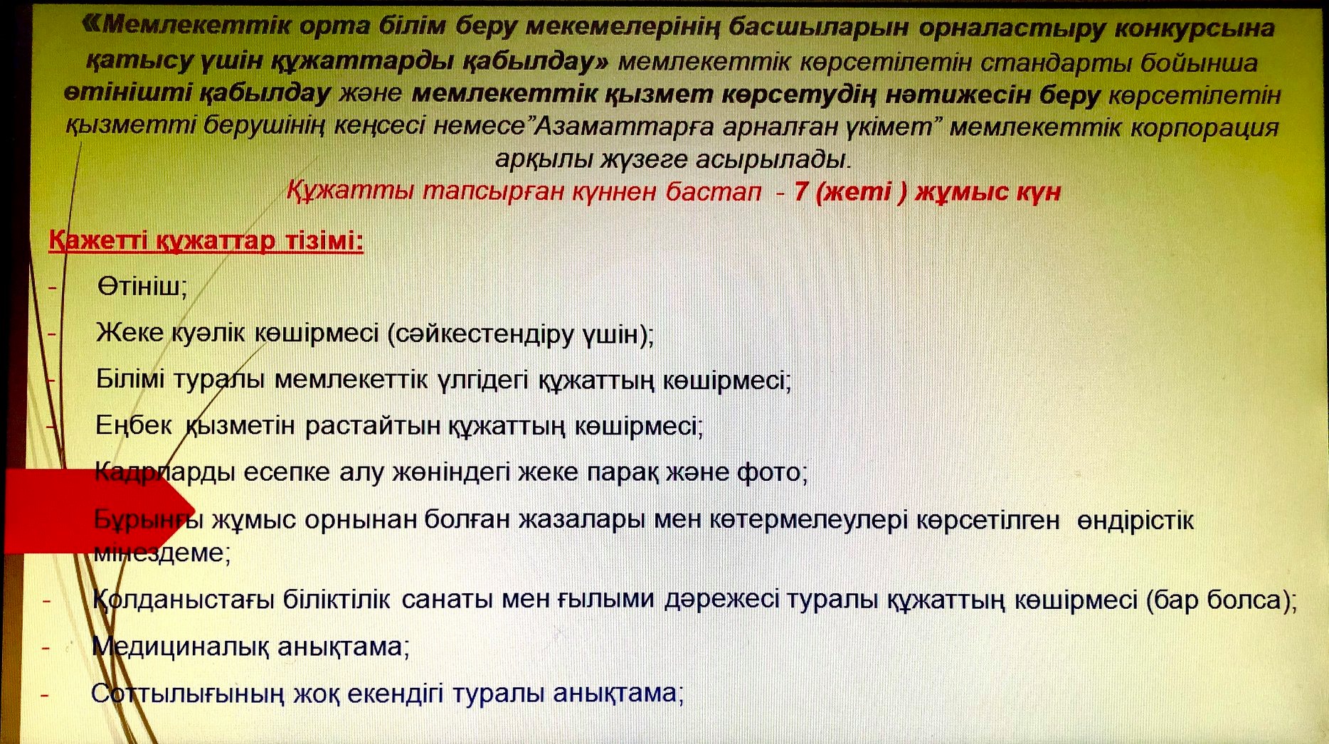«Мемлекеттік орта білім беру мекемелерінің басшыларын орналастыру конкурсына қатысу үшін құжаттарды қабылдау»