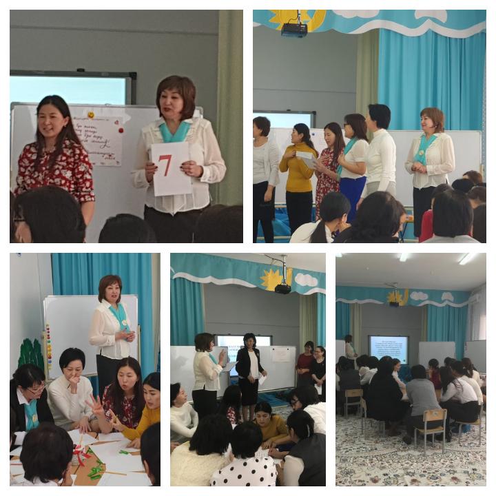 Осы ретте әріптестерімен бірге жаңа тәсілдерді енгізу үшін коучинг пен тәлімгерлік арқылы жұмыс істеуге мүмкіндік беретін дағдыларды «Мектепке дейінгі ұйымда тимбилдинг жаттығуын және коучинг технологиясын қолдау» атты тақырыбында №55 балабақша психологы Мухлесова А.К өз жұмысын ұсынды.